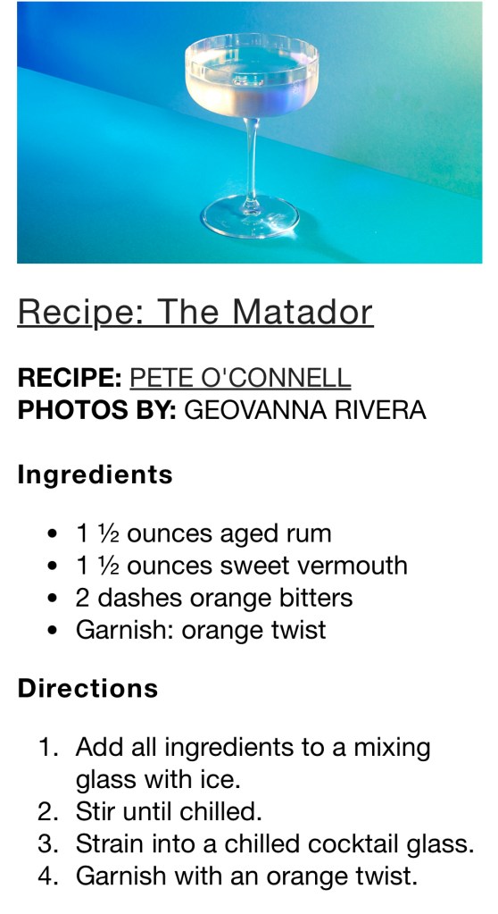Viele Wege führen nach Rom und ebenso zu meinen Drink-Kreationen. Heute war die Ausgangslage dafür, dass ich das Rezept vom berühmten «The Matador» im geschätzten VinePair-Newsletter gesehen hatte: