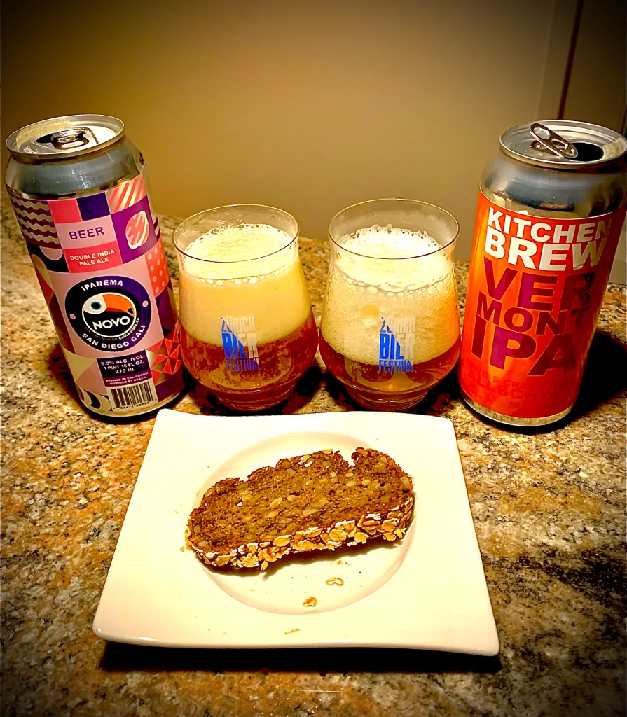 So, genug gelabert, let’s get ready to rumble! Heute stehen sich erneut zwei ungleiche Biere gegenüber. In der einen Ecke haben wir ein NEIPA («New England IPA»), wie es in Vermont anfänglich gebraut worden ist, das Vermont IPA von der Allschwiler Kitchen Brew. Im Dreiländereck gelegen, angrenzend an die Stadt Basel und genauso fasnachtsaffin, wird es seit rund anderthalb Jahren hergestellt und bringt 6,5 Alkoholprozente und sanfte 30 Bittereinheiten auf die Waage. Zum heutigen Tag des Bieres gehört wohl auch anzumerken, dass letzte Woche, am 18. April, als sich Wermutwölfe im Zürcher Chreis Cheib auf bierige Schnitzeljagd machten, die Award-Night des Swiss Beer Award 2024 stattgefunden hat. Und das basellandschaftliche Vermont IPA holte in der Kategorie Extra IPA’s die Silbermedaille, nur geschlagen von dem India Dark Ale derselben Brauerei.