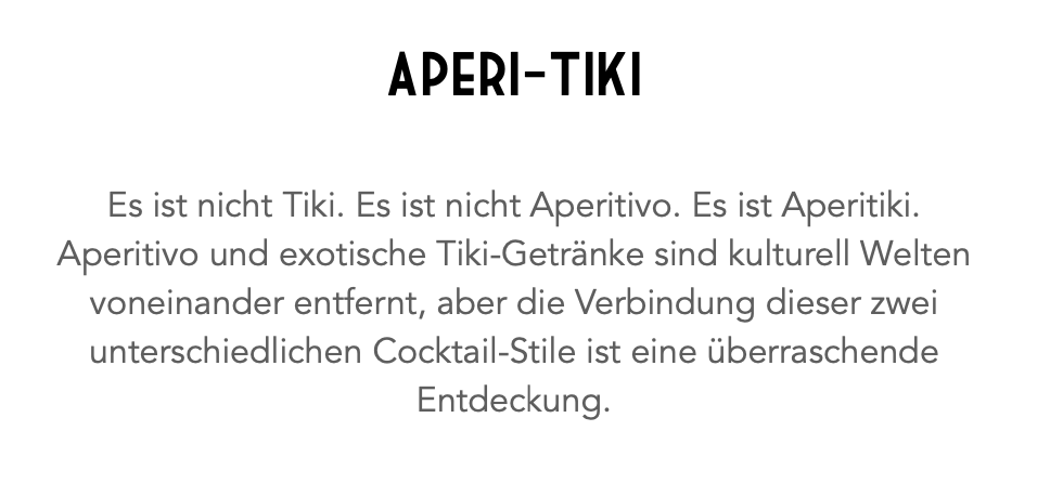 Es ist schon eine Weile her, als ich letztmals in der tollen Zürcher Garibaldi Bar einkehrte. Ich habe seit Langem vor, mich dort durch ihre Aperi-Tiki-Karte zu trinken und daraus einen Kneipentour-Artikel zu verfassen. Aperi-Tiki? Ja, genau, so beschreiben das die Barbetreiber: