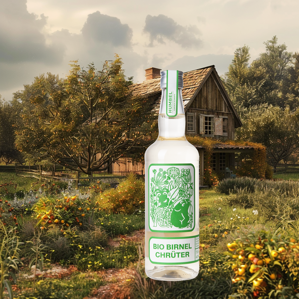 Humbels «Bio Birnel Chrüter – Einfach Schnaps» wird nach traditioneller Art hergestellt; ein Kräuterschnaps auf Obstbrandbasis – verfeinert und gesüsst mit Birnendicksaft. Unsere Entdeckungsreise ist dieses Mal also auch eine Zeitreise zu einem Schnaps, wie ihn wahrscheinlich unsere Urgrosseltern getrunken haben.