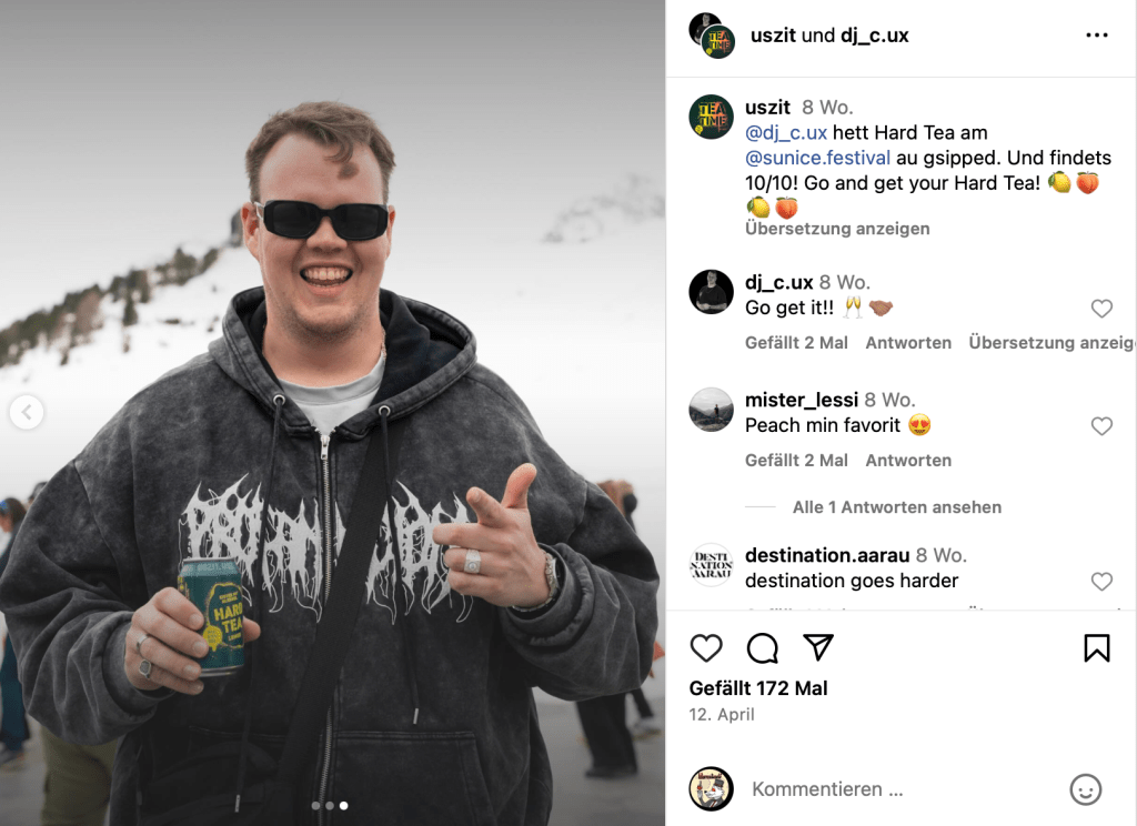 Der Deutsche Werberat hat aktuell per 1. August 2024 neue Social-Media-Richtlinien über die kommerzielle Kommunikation für alkoholhaltige Getränke veröffentlicht. Es soll Transparenz verordnet und (Influencer-)Werbung an Minderjährige verhindern. Ich sehe solche Gremien eher kritisch, finde die nehmen sich oft etwas zu ernst und will mich hier natürlich auch nicht als moralische Instanz aufspielen, das wäre seltsam. Ich möchte trotzdem nur festhalten, dass der Auftritt des «Hard Tea’s» sich ziemlich eindeutig an eine klar junge Zielgruppe richtet.