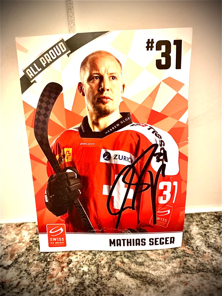 Über die Finalniederlage 2018 – auch wieder gegen Schweden – will ich keine grossen Worte verlieren, da das nicht verheilte Wunden hinterlassen hat. Die Schweiz führte. Selbst im Penaltyschiessen. Und doch … nachdem es vorbei war, konnte ich eine ganze Weile nicht mehr sprechen und vielen meiner Landsleute ist es wohl gleich ergangen. Und dieses Jahr kam es dann zur vorerst letzten Finalniederlage, gegen die Bier-Nation Tschechien, in Prag. Apropoz Bier: Ich bin stolzer Besitzer einer Autogrammkarte vom legendären ZSC-Verteidiger und langjährigem Nationalspieler Mathias Seger im Nati-Trikot: