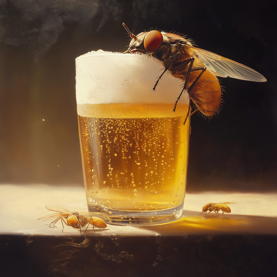 «Sex-Entzug treibt Fruchtfliegen in den Alkohol», titelte die Süddeutsche Zeitung in einem etwas älteren Artikel. Wie wir Menschen greifen Fruchtfliegen bei Frust gerne zu stimmungshebenden Substanzen. Und wenn die Tierchen nicht plötzlich Schokolade, das Rauchen … oder Gott bewahre – gar Cannabis oder noch Schlimmeres – entdeckt haben, werden sie sich auch im Jahr 2024 einen hinter die Binde kippen, wenn Flaute im Bett herrscht.