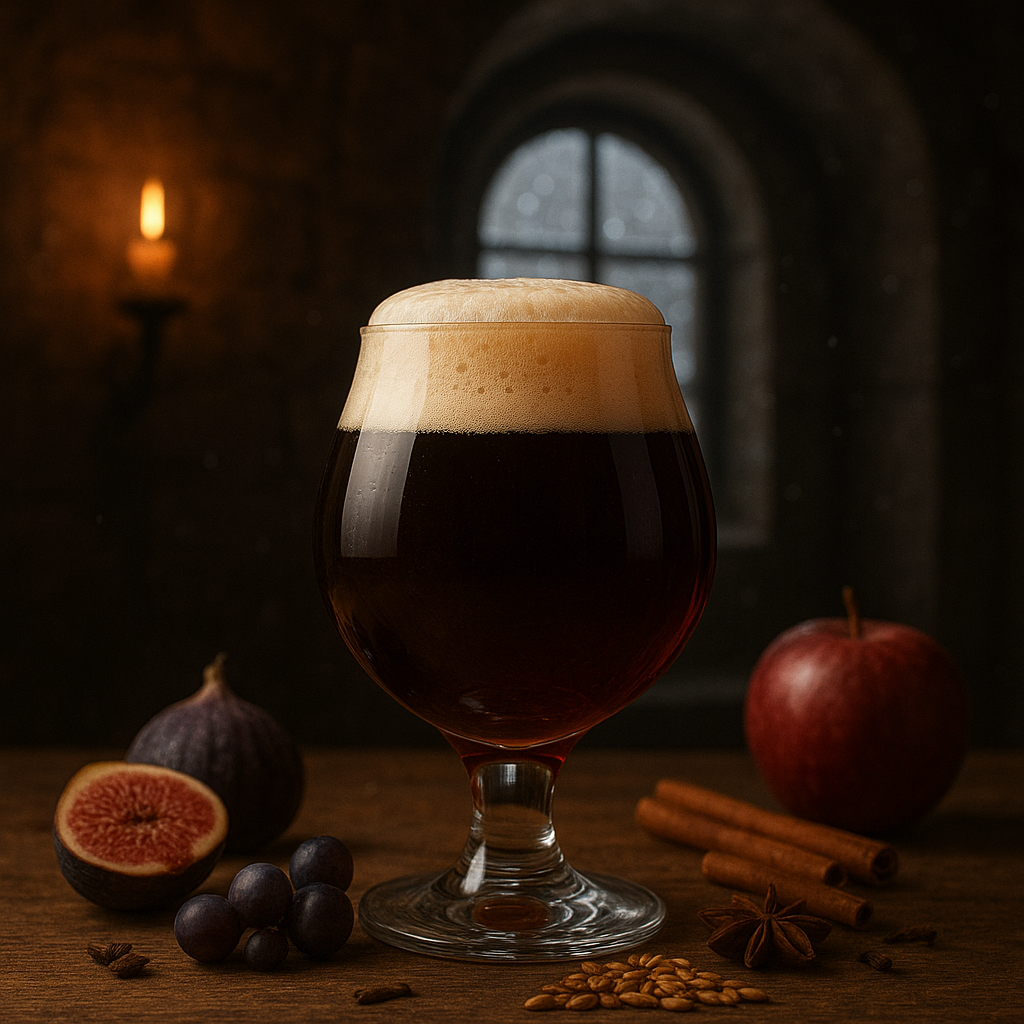 Ein Quadrupel ist ein Genuss für alle Sinne. Es strahlt im Glas in dunklen Farben, die von tiefem Rubinrot bis zu sattem Braun reichen, und trägt eine cremige Schaumkrone. Der Duft verspricht bereits Komplexität: Es begrüssen Euch Aromen von Rosinen, Feigen, Datteln und Pflaumen, die sich mit Karamell, Schokolade, Vanille und dunklem Brot paaren. Hinzu kommen würzige Noten, die an Nelken oder Pfeffer erinnern.